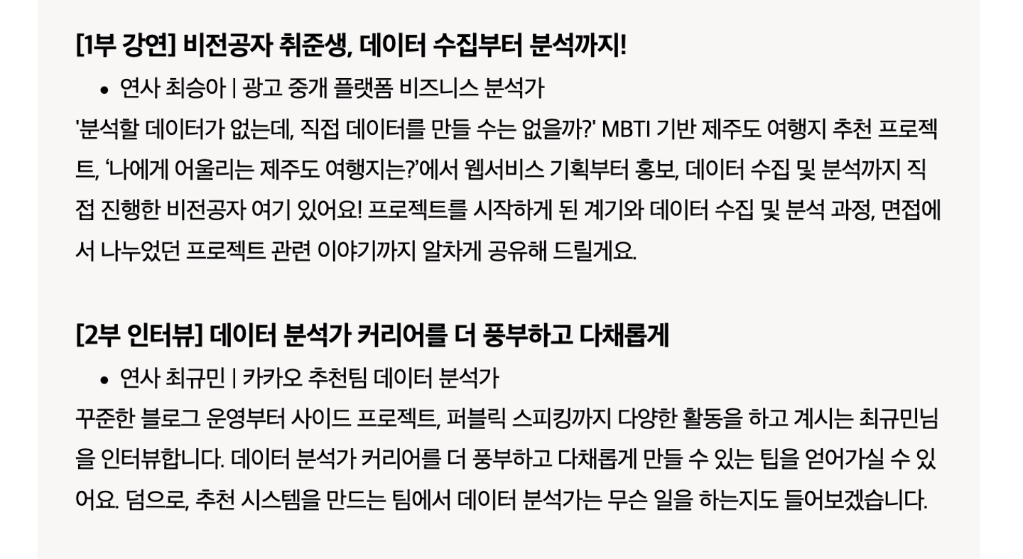 ⇒ 이렇게 스스로 분석을 해보는 것은 회사를 다니면서도 계속 필요한 역량 (저스트 두잇!!)