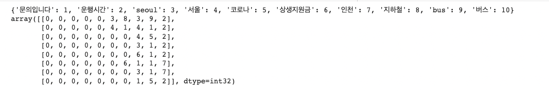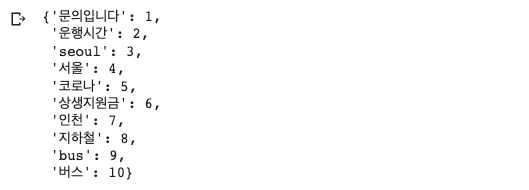 - fit_on_texts와 word_index를 사용하여 key value로 이루어진 딕셔너리를 생성