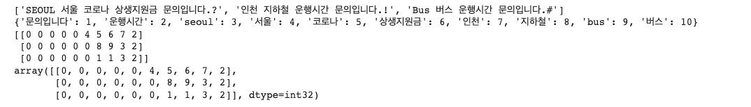 - 마지막으로 pad_sequences를 이용하여 리스트의 길이를 통일화