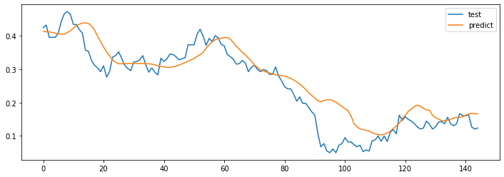 "predict":y_pred.flatten()}).plot(figsize=(12,4))