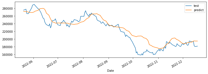 "predict":y_predict_inverse}).plot(figsize=(12,4))